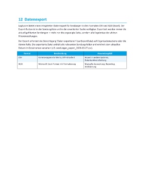 LogiLoom bietet einen integrierten Datenexport für Sendungen in den Formaten CSV und XLSX (Excel). Der